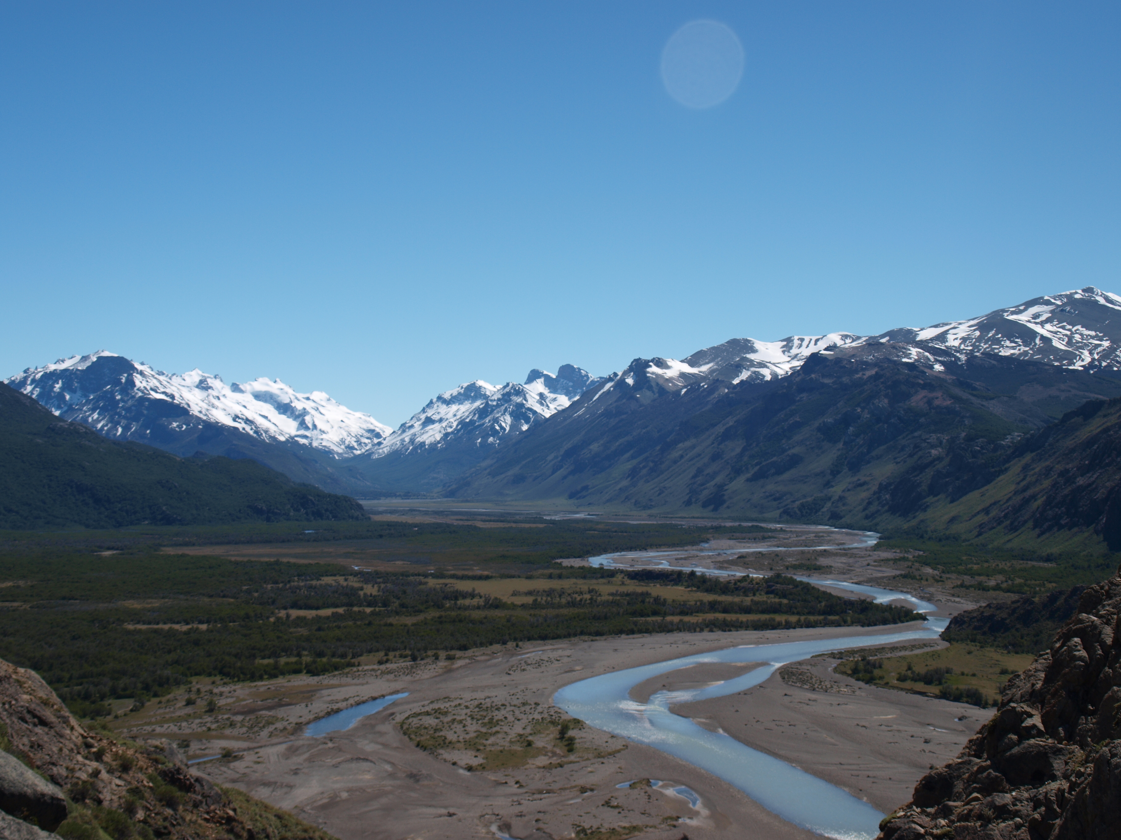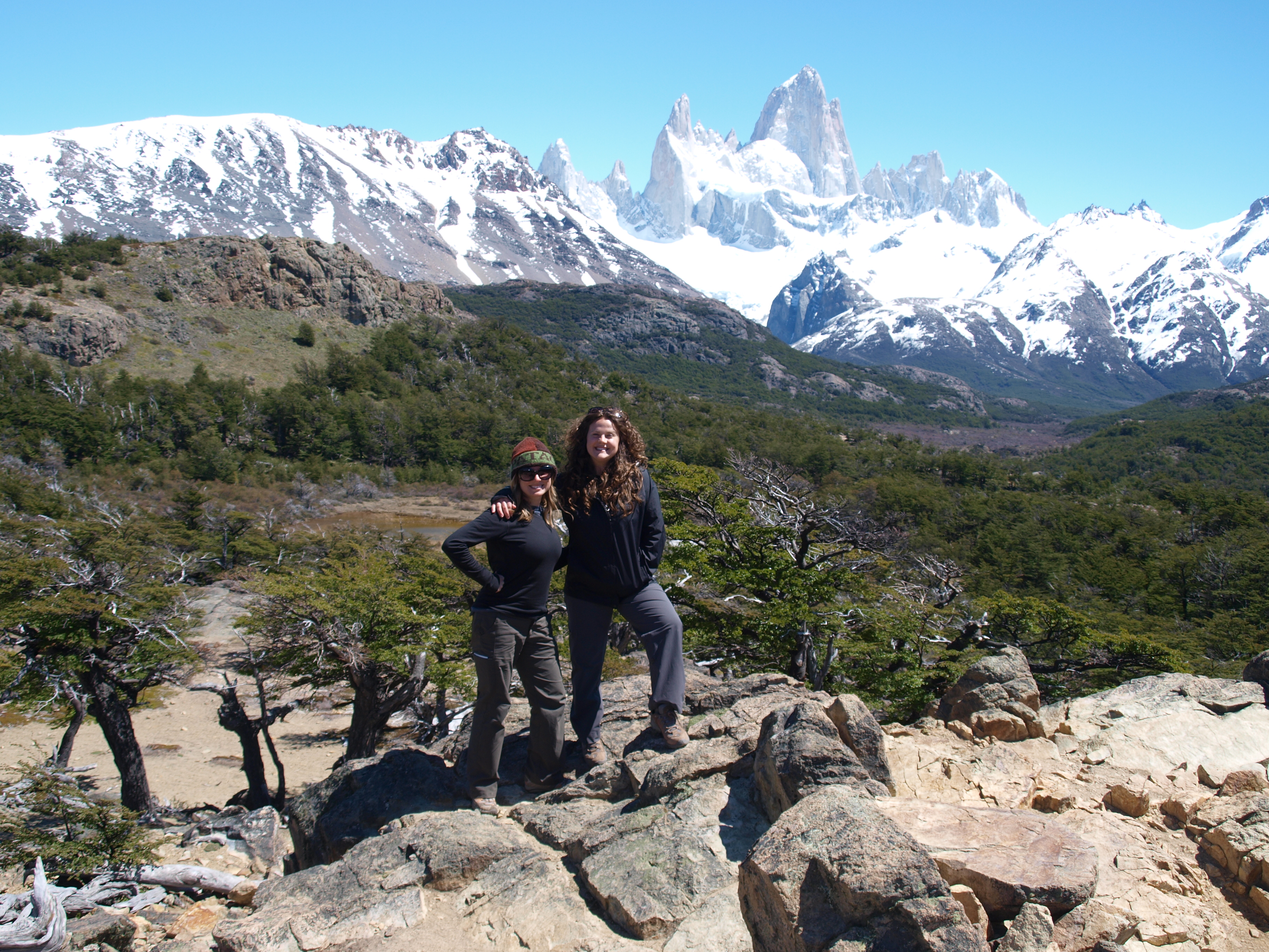 On our way back down the trail, the sky cleared completely and we were able to glance back and see the entire panoramic view of the range, including Fitz Roy. We celebrated that evening with a fantastic steak dinner and a couple bottles of vino.