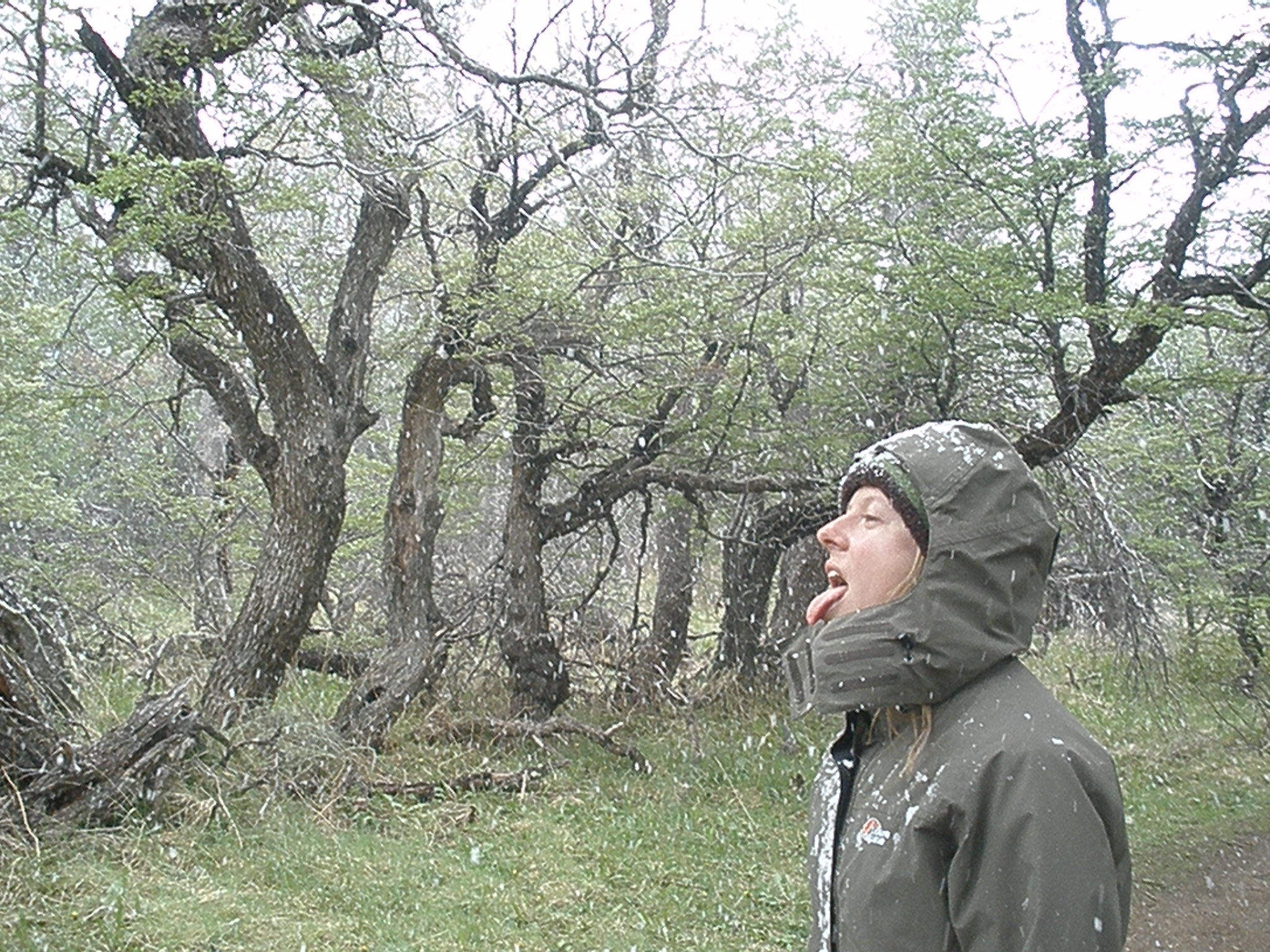 Our second day, the weather was better, but still overcast. Since you can pretty much experience all four seasons in one day here, we decided to try our luck, suck it up and hike to Laguna de Los Tres, which is supposed to be beautiful and have a great view of one of the mountains, Fitz Roy. It was a nice hike, but the further we got into the mountains, the colder it became, and before we knew it, the sky was dumping snow. We had to turn around because it was pretty miserable and we couldn’t see anything.