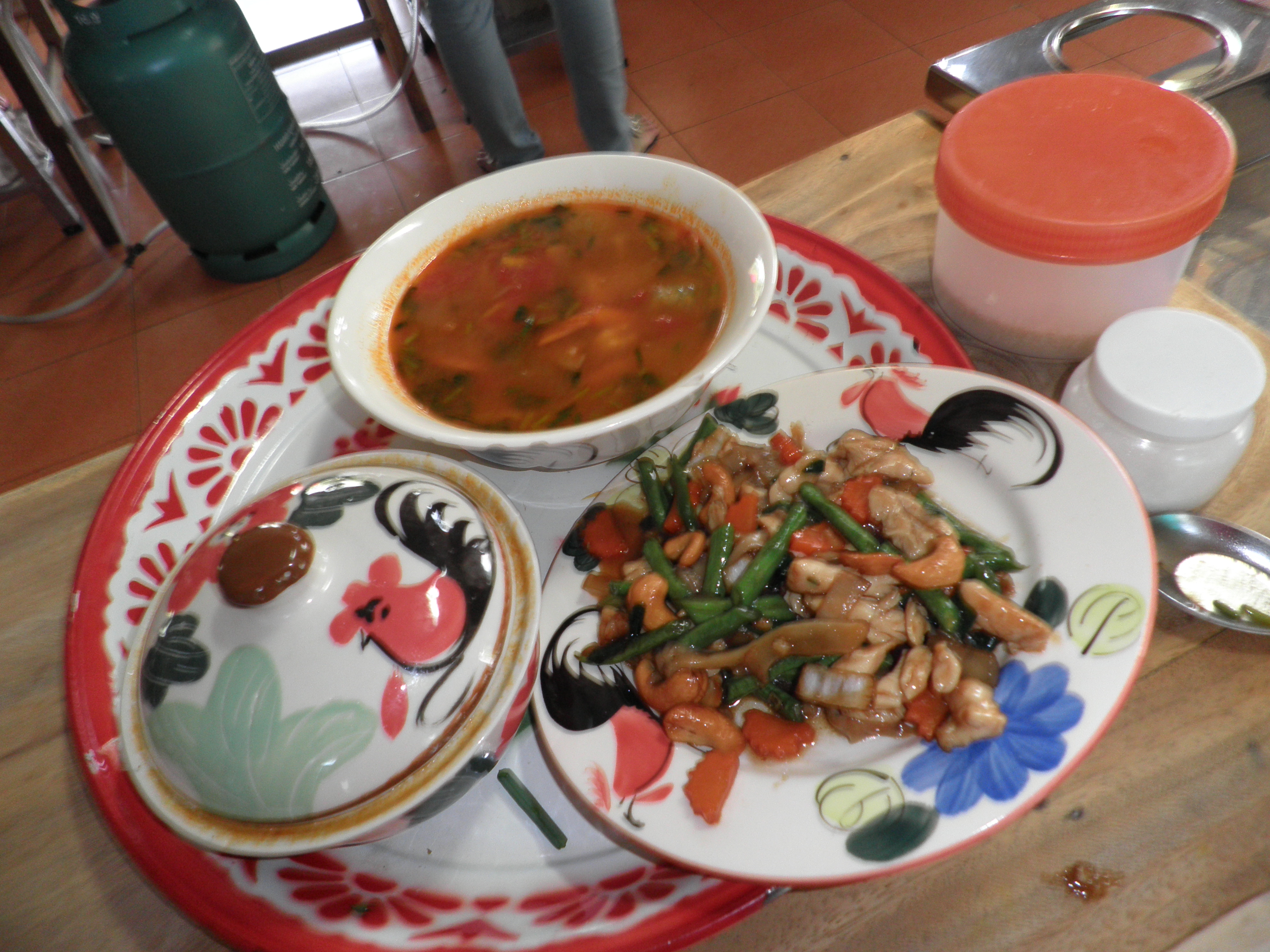 Upon arrival, we were given a tour of the farm, including an explanation of the produce that is grown there, before being shown to our cooking stations. In no time we were pounding mortars and pestles to make our own chili paste from scratch…it’s actually quite a workout! Every person chose five dishes to make…Kelly and I decided on green and red chicken curry, tom yam and tom ka soups, pad thai, chicken with basil, chicken with cashew nuts, and sticky rice with mango.