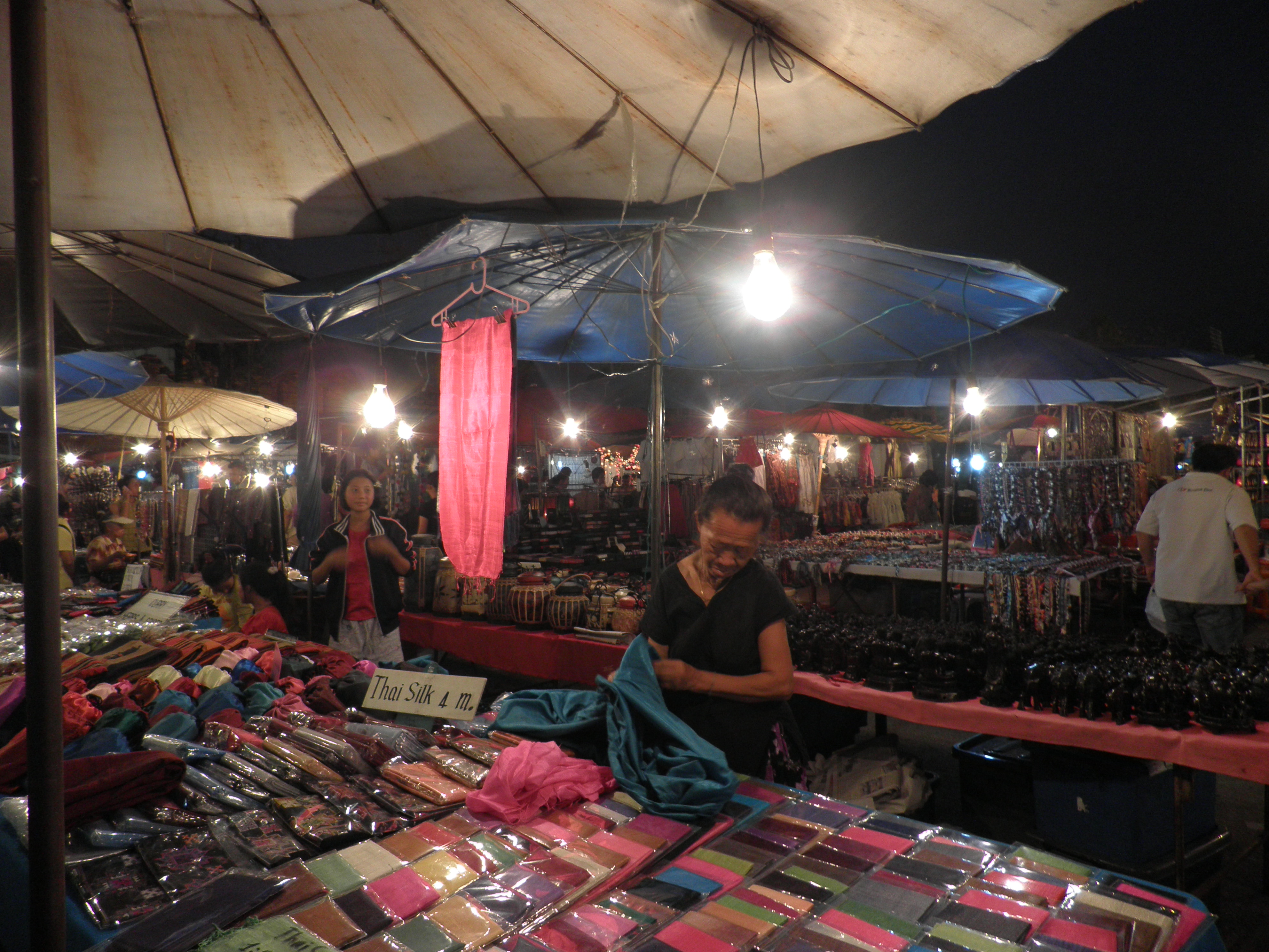 The next afternoon and evening was dedicated to the Sunday Walking Street Market, a market that blows all the other markets we‘ve seen away. Rachadamnoen Road, one of the main streets in the Old City, is closed off to traffic and the entire street is lined with row after row of vendor booths that sell clothing, jewelry, home décor, paintings, and other local crafts. Singers, dancers, and other musicians perform in the middle of the road and tucked inside the temple yards are food stalls packed with diners feasting on pork dumplings, fried noodles and rice, meat skewers, and fresh fruit smoothies. Kelly and I had another fine, cheap street food meal as we tried to navigate the shops that sprawled in every direction, but finally had to give up around 9 p.m. After four hours, we probably only saw half the market…it is that huge.