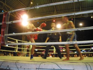 That evening, we all ticked another Thailand ‘must-see’ off of our list and attended a Muy Thai Boxing Fight. Picturing a boxing match from the States, we thought we would be sitting in a crowded arena with hundreds of other fans, but were surprised when we arrived at a courtyard full of bars and were escorted to a small ring surrounded by benches and tables…much more up close and personal than we expected!