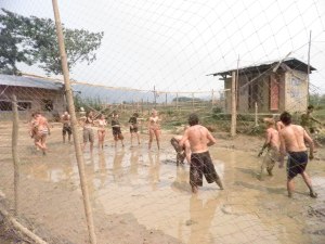 On to the next bar. Mud volleyball!! I’m always game for a good volleyball match so I was so excited to try out this new twist to an old fave. It was awesome. Not so much the game itself, just everyone falling all over the place trying to hit the ball! It was quite difficult…one guy even suggested that we move over to another court without mud so we could play an actual game when one of the girls shouted “its not about the game, its about the MUD!!” I completely agreed. It soon turned into everyone just running around and wrestling, completely covered. Good times.