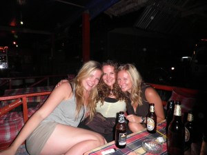At night, everyone heads down to another part of the river lined with bars and restaurants. Most of them are blaring techno or rock music til the wee morning hours. We spent a night or two down there and enjoyed some of the best drunkin’ dancing that Kim and I have ever seen. Boys dancing on poles (yes, boys), some had pre-choreographed routines….we were speachless and almost wet our pants from laughing! We were lucky to find a bar a little more our style that we hung out at most nights with our new friends.