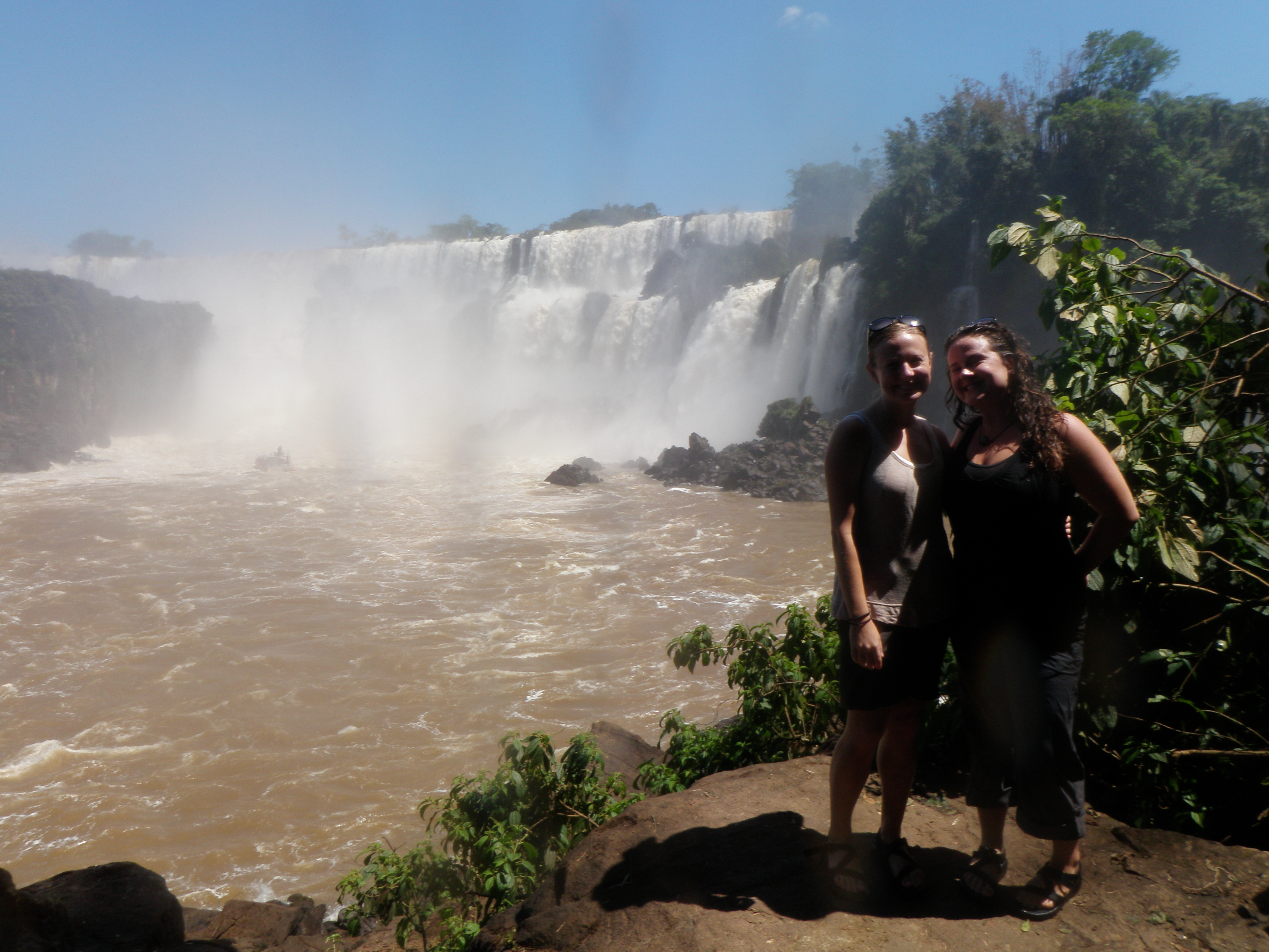 After a 18 hour bus ride, we arrived in the small town of Puerto Iguazu and got settled in our hostel, Residencial Uno. The owners, Dian and Balleria, have five big dogs that ruled the place, so we got to get our ‘cute dog’ fix during our three days there. Our first night the owners hosted an asado (an Argentinean bbq where they cook the whole cow) and Kelly and I tried some of the intestines and the kidney. Kelly loved the taste, but I could take or leave it.